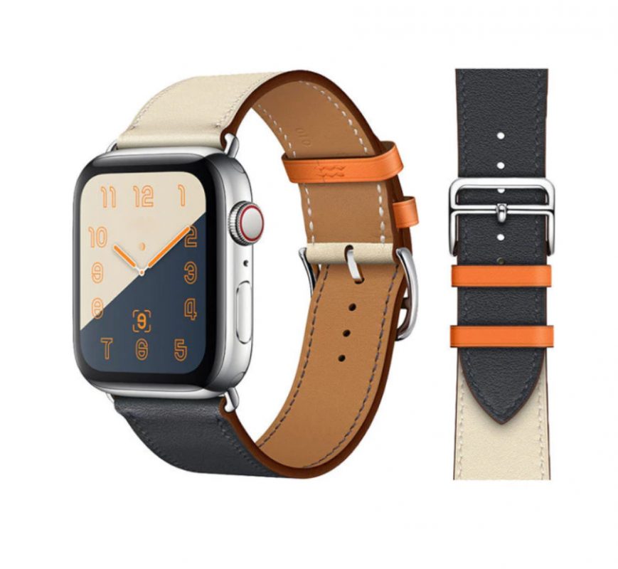 eses Curea colorată din piele pentru Apple Watch - Bej albastru închis 38mm, 40mm, 41mm