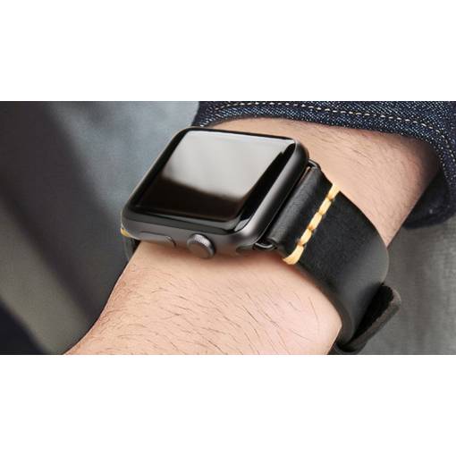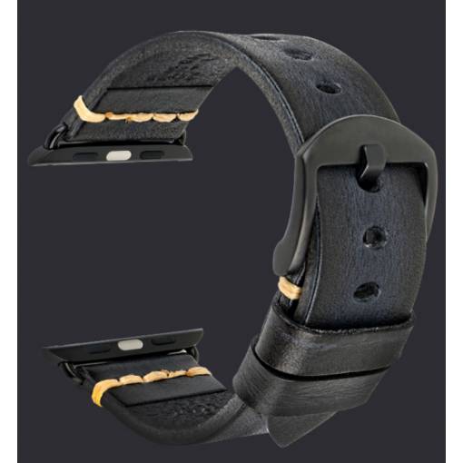Curea vintage din piele eses pentru Apple Watch - Negru 38mm, 40mm, 41mm
