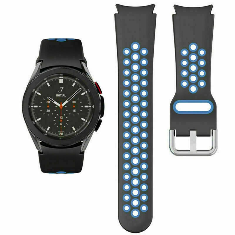 eses Curea perforata din silicon pentru Samsung Galaxy Watch 4, 5, 6, 7 - Negru albastru, 20 mm