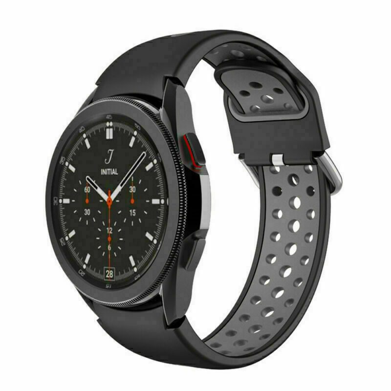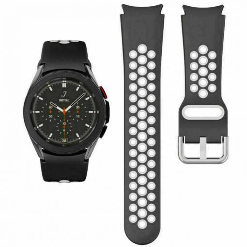 eses Curea perforata din silicon pentru Samsung Galaxy Watch 4, 5, 6, 7 - Negru gri, 20 mm