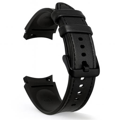 Curea sport din piele eses pentru Samsung Galaxy Watch 4, 5, 6, 7 - Negru, 20 mm