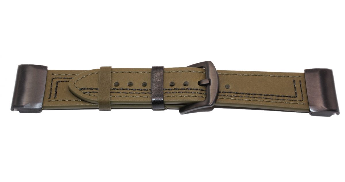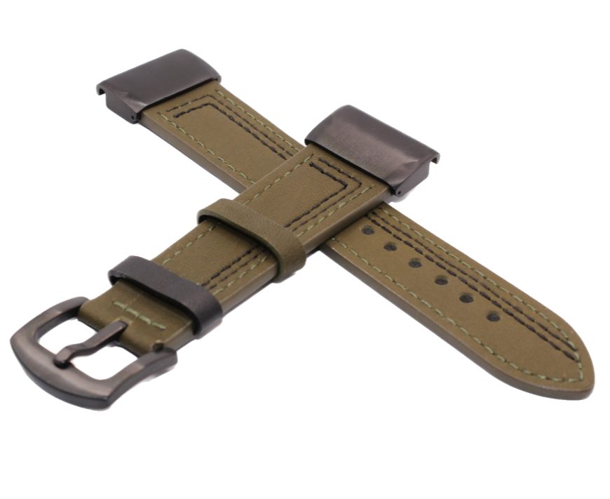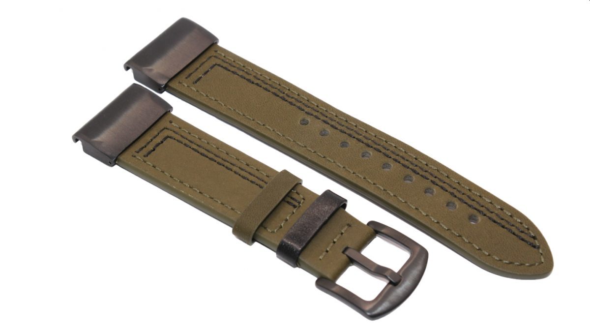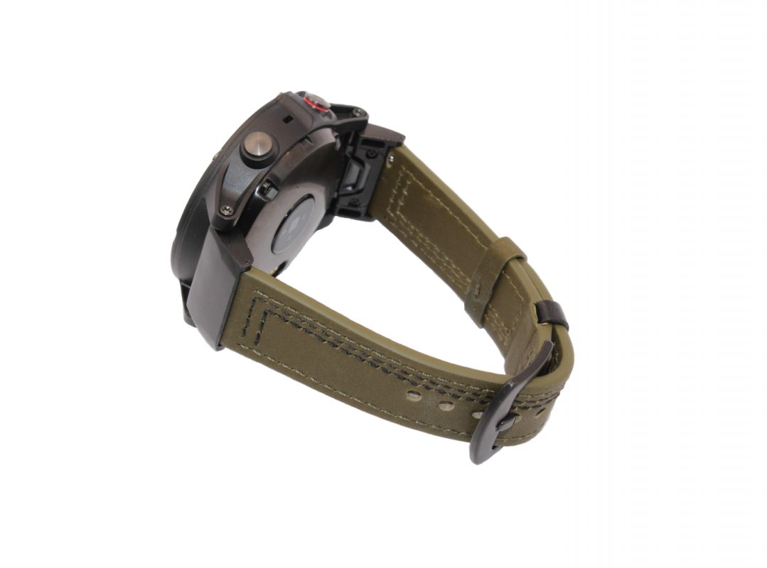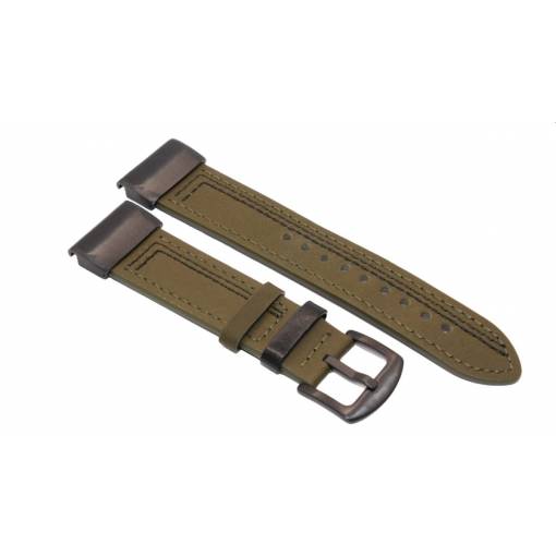 eses Curea din piele pentru Garmin - Kaki cu cusături negre, QuickFit 26 mm