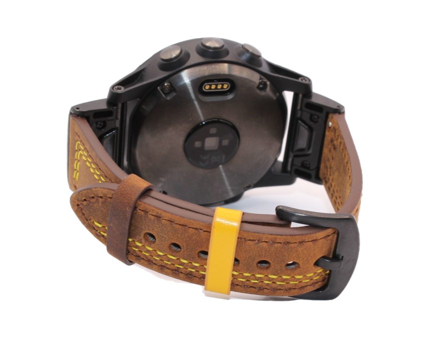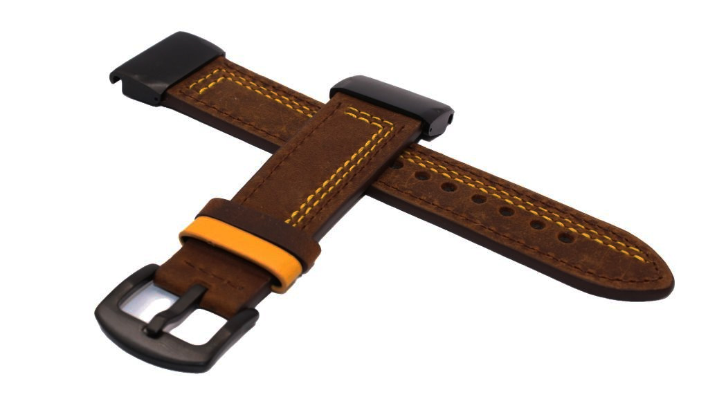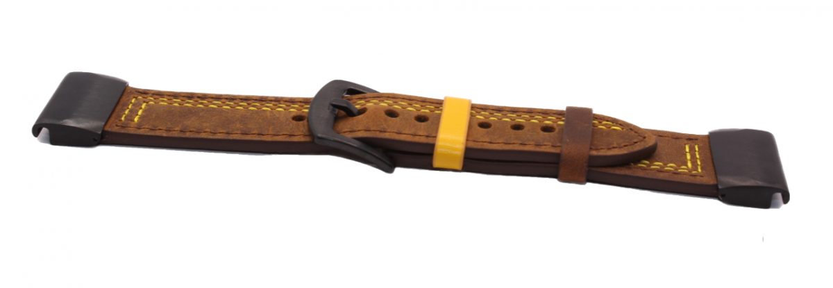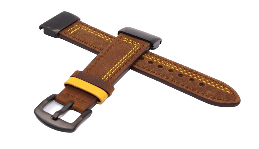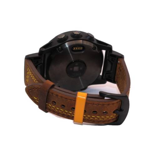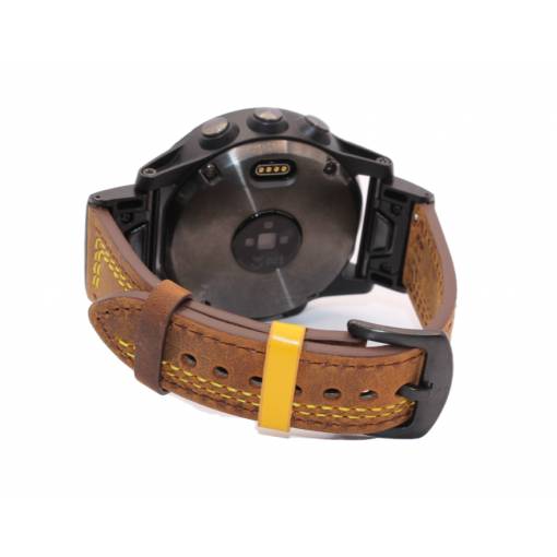 eses Curea din piele pentru Garmin - Maro cu cusături galbene, QuickFit 26 mm