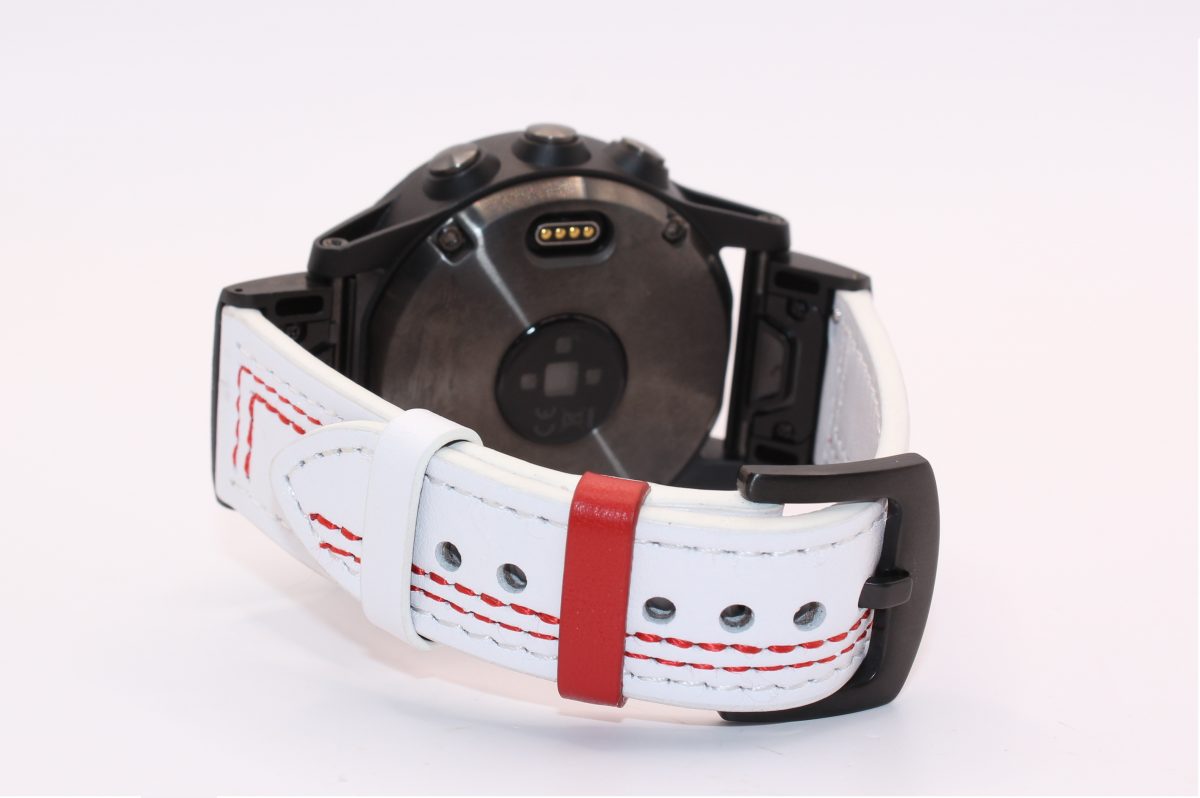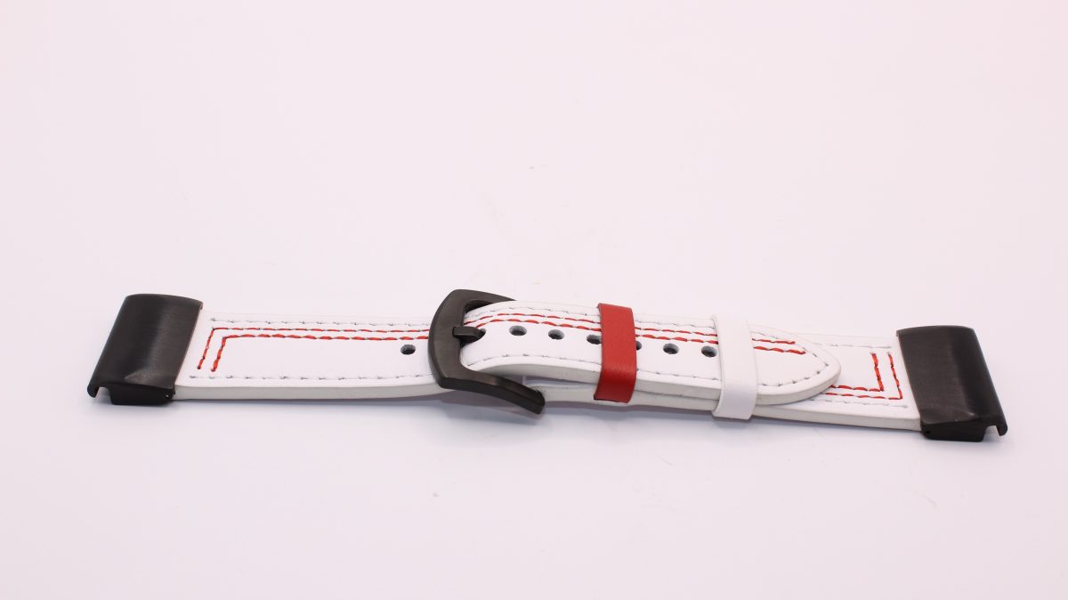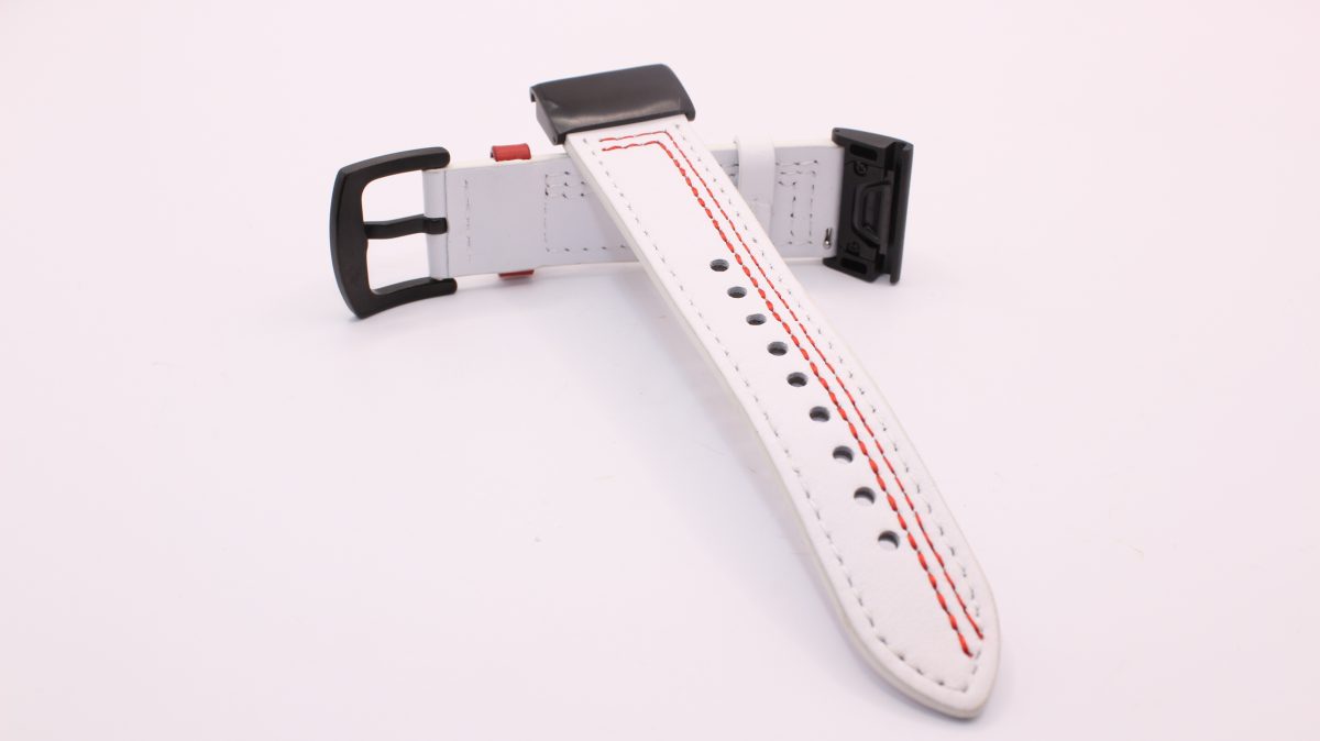 eses Curea din piele pentru Garmin - Albă cu cusături roșii, QuickFit 26 mm