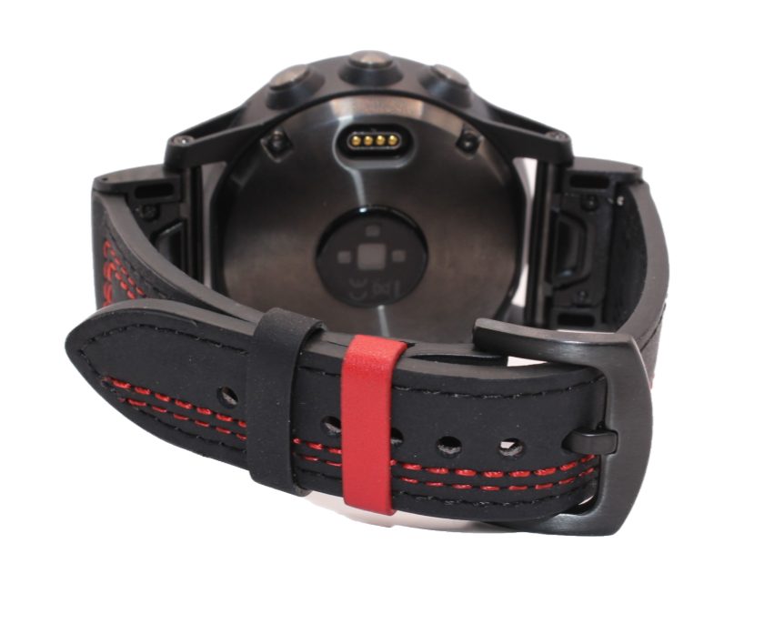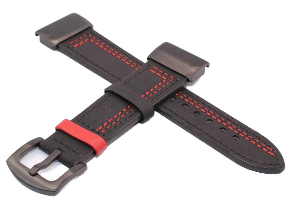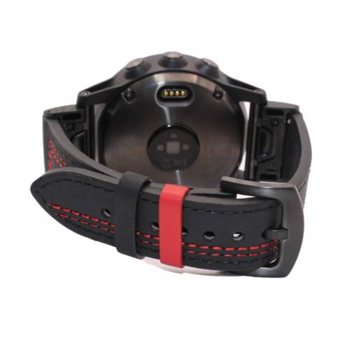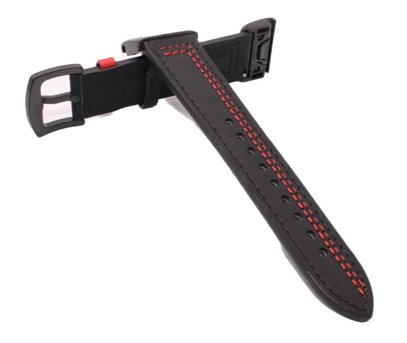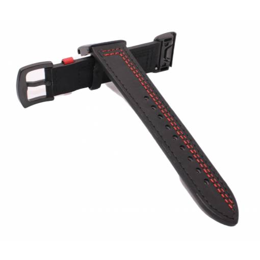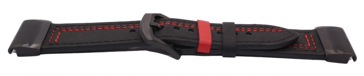 eses Curea din piele pentru Garmin - Neagra cu cusaturi rosii, QuickFit 26 mm