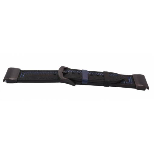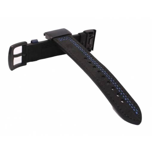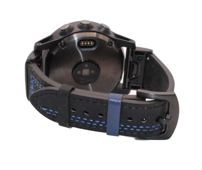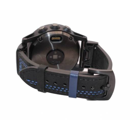 eses Curea din piele pentru Garmin - Neagra cu cusaturi albastre, QuickFit 22 mm