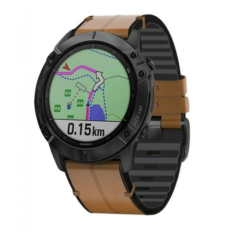 Curea sport din piele eses pentru Garmin - Maro deschis, QuickFit 22 mm
