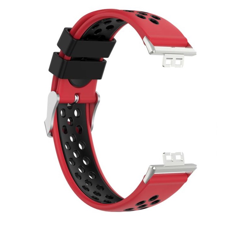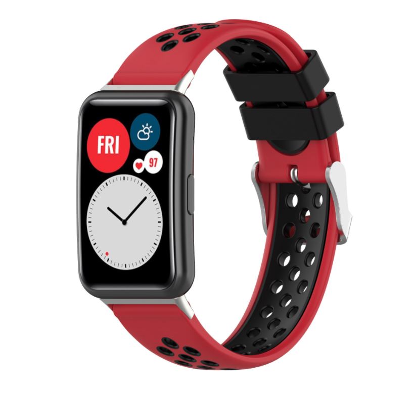 eses Curea din silicon cu orificii pentru Huawei Watch Fit si Huawei Watch Fit New - Rosu negru