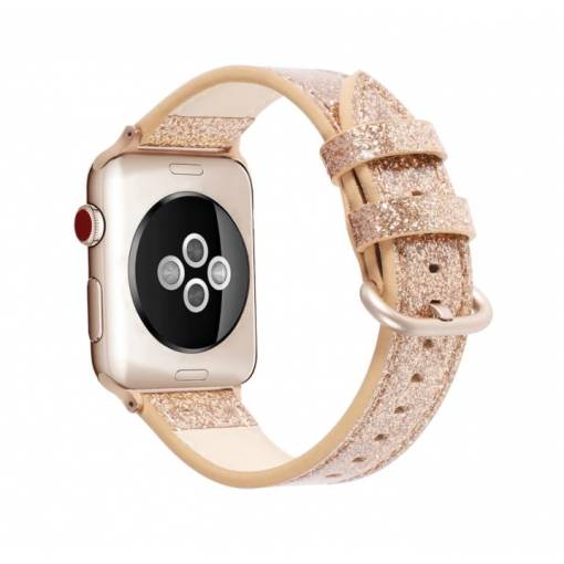 Curea de piele strălucitoare pentru Apple Watch - Aurie 38mm, 40mm, 41mm