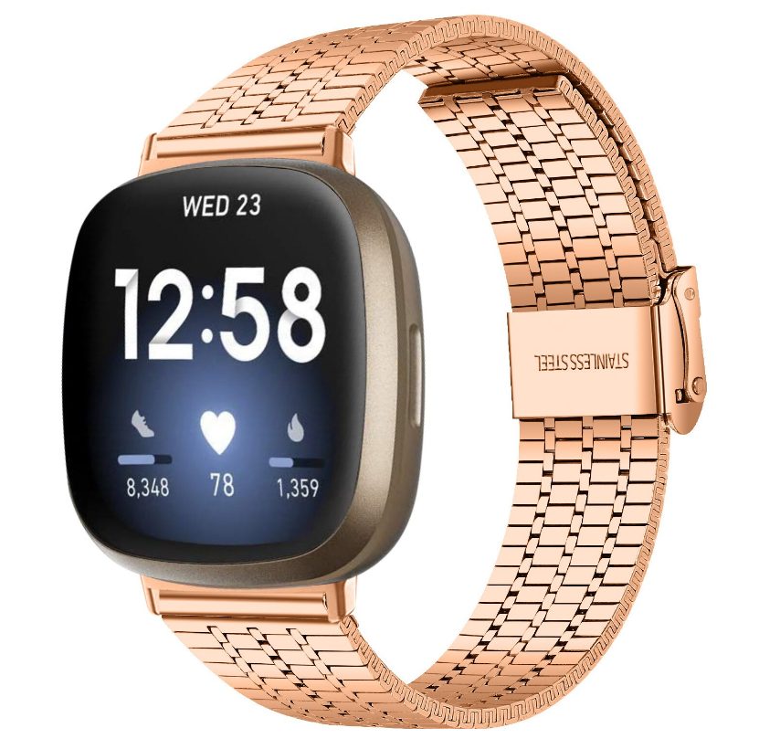 ES Metal curea triplă pentru Fitbit Versa 3 și 4, Sense 1 și 2 - Aur roz