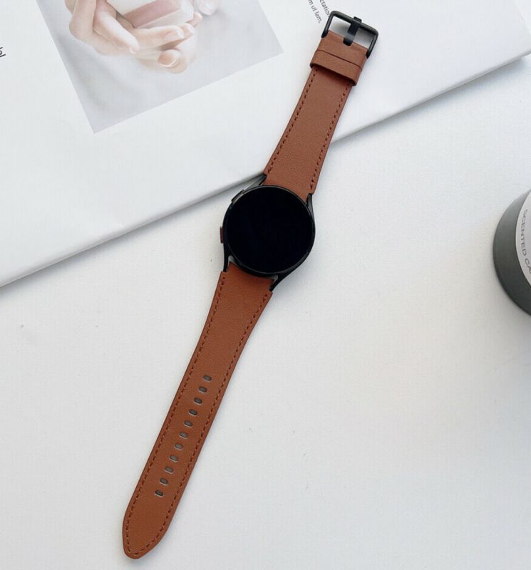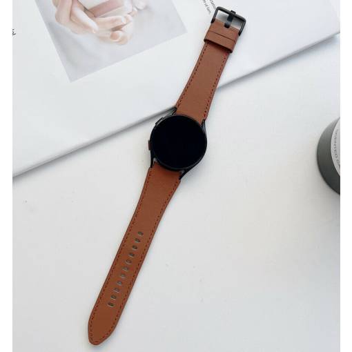 Curea sport din piele eses pentru Samsung Galaxy Watch 4, 5, 6, 7 - Maro, 20 mm