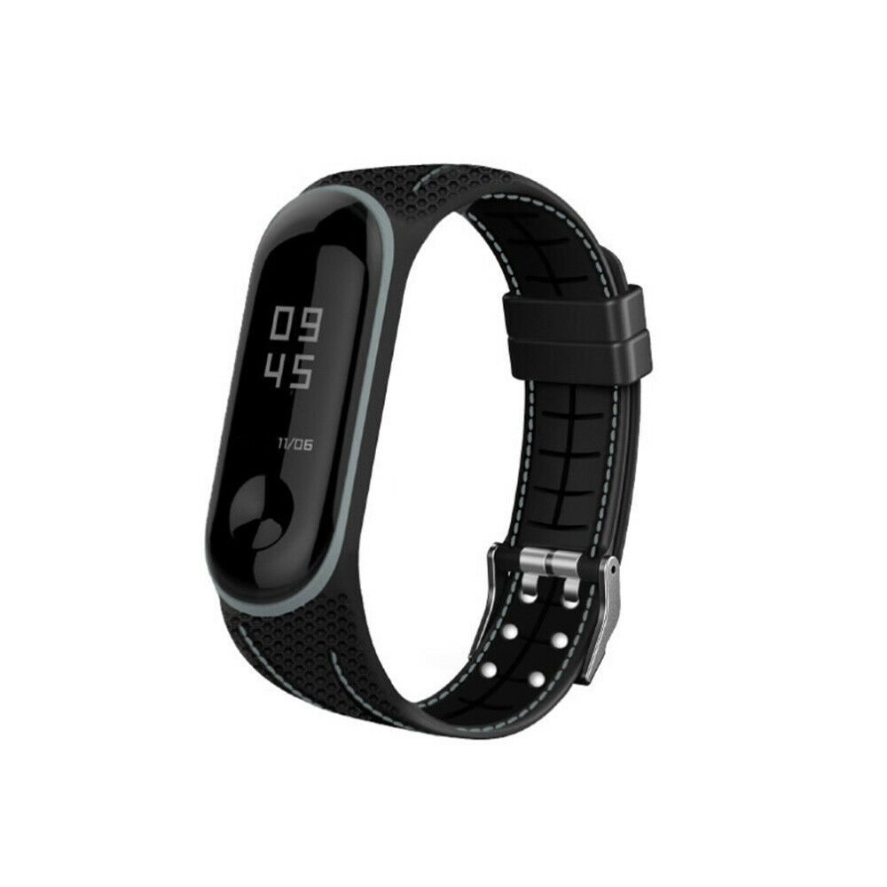 Curea din silicon eses pentru Xiaomi Mi Band 5 și Xiaomi Mi Band 6 - Neagră cu cusături gri