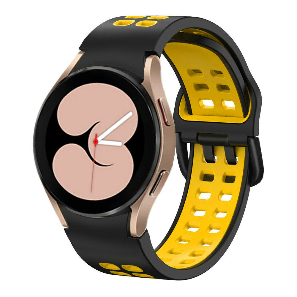 Curea perforată din silicon cu două rânduri eses pentru Samsung Galaxy Watch 4, 5, 6, 7 - Negru Galben, 20 mm