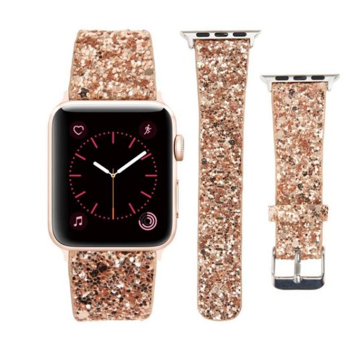 Curea din piele cu paiete eses pentru Apple Watch - Auriu roz 42mm, 44mm, 45mm, 49mm