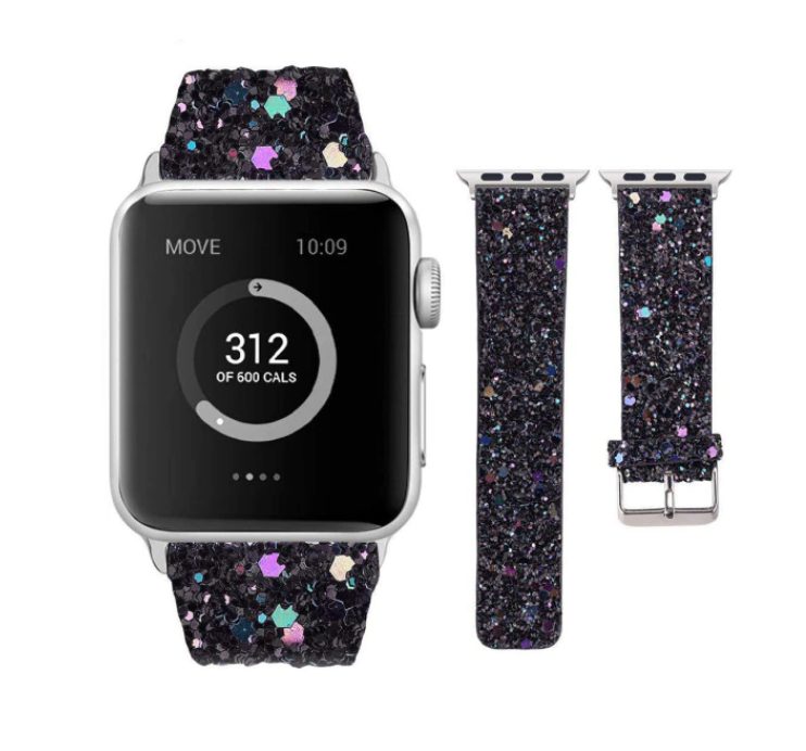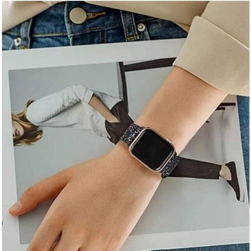 Brățară din piele cu paiete pentru Apple Watch - Neagră 42mm, 44mm, 45mm, 49mm