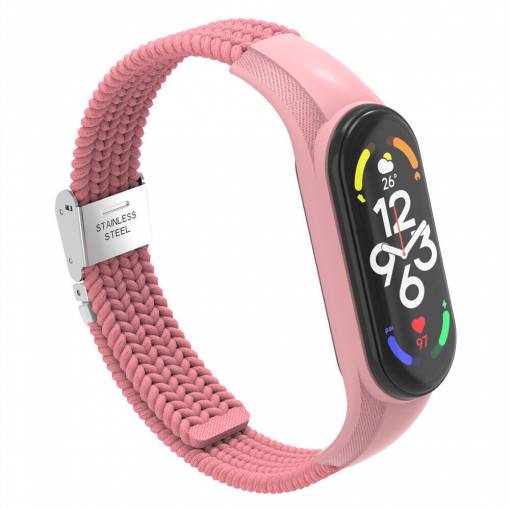 Curea din nailon eses cu suport din silicon pentru Xiaomi Smart Band 7 - Roz