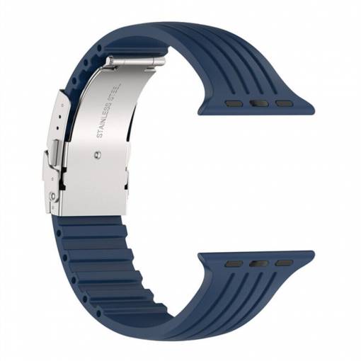 Curea din silicon eses pentru Apple Watch cu cataramă metalică - Albastru închis 42mm, 44mm, 45mm, 49mm