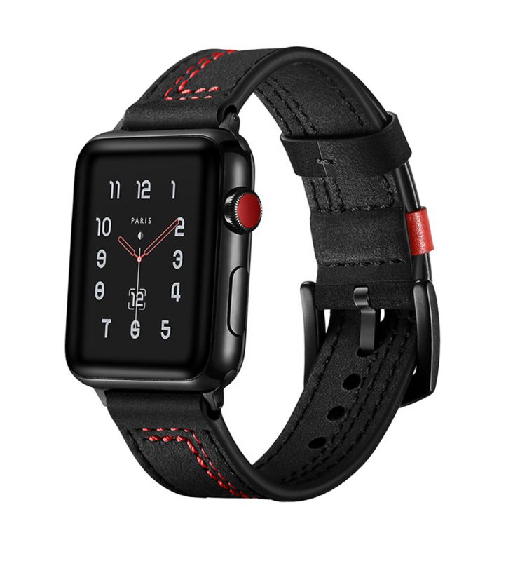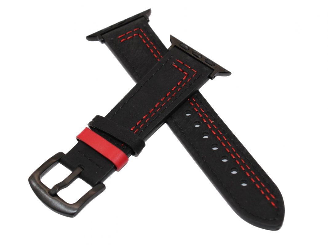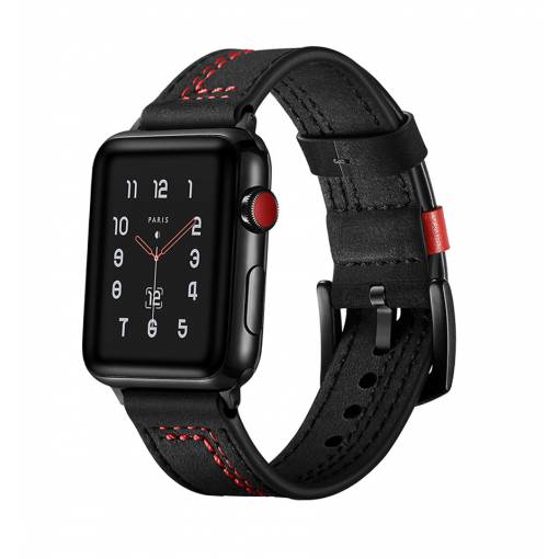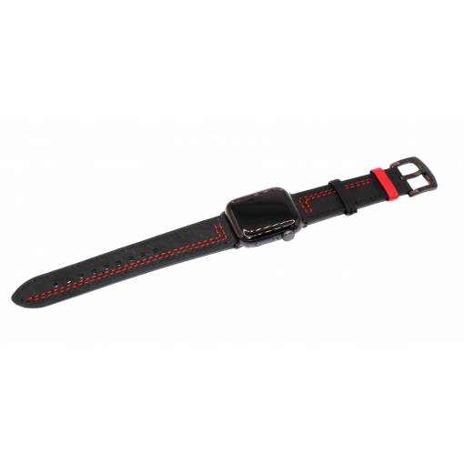 Curea din piele eses pentru Apple Watch - Neagră cu model roșu 42mm, 44mm, 45mm, 49mm