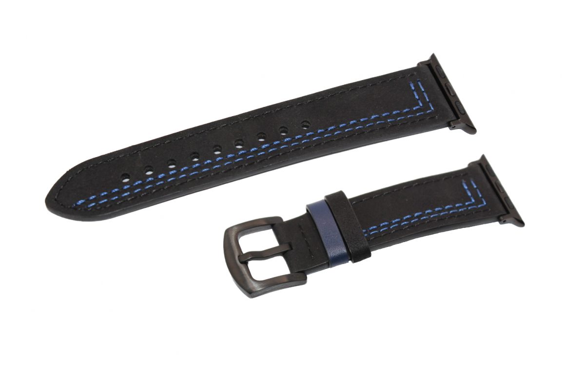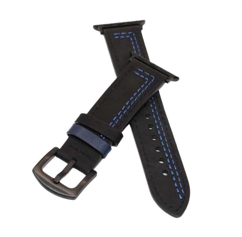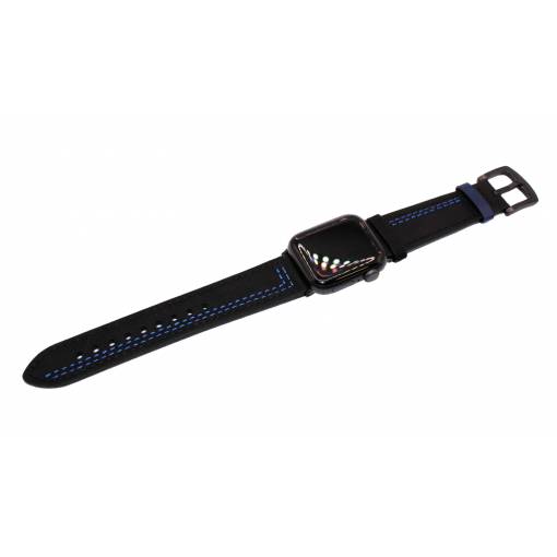 eses Curea din piele pentru Apple Watch - Neagră cu model albastru 42mm, 44mm, 45mm, 49mm