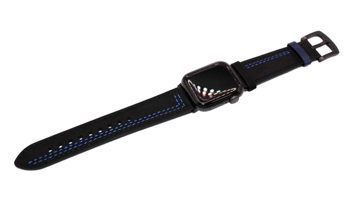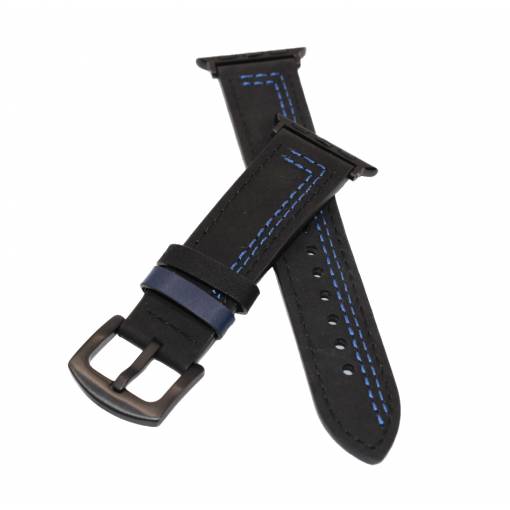Curea din piele eses pentru Apple Watch - Neagră cu model albastru 38mm, 40mm, 41mm