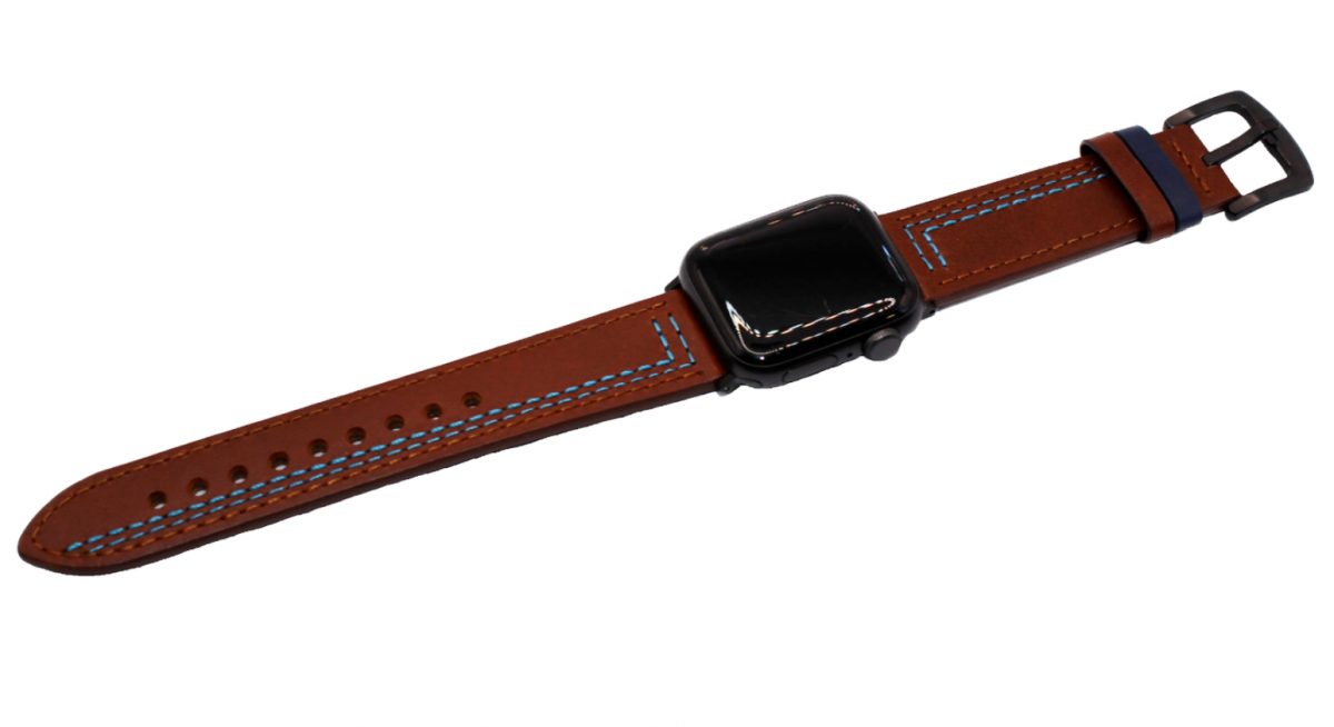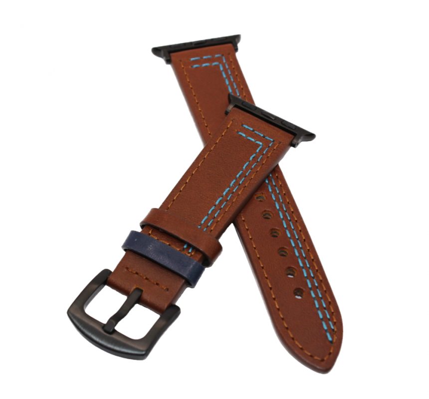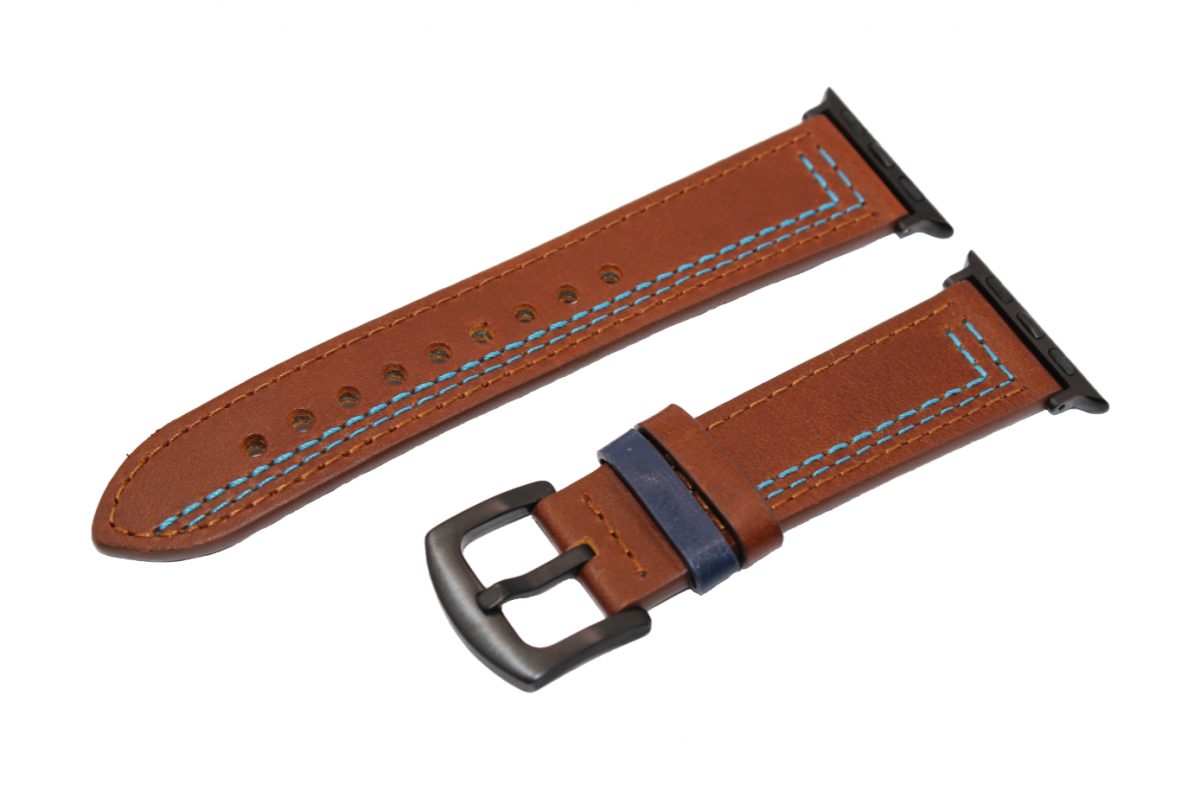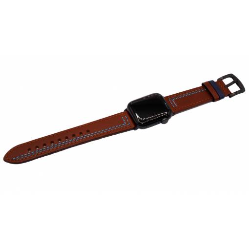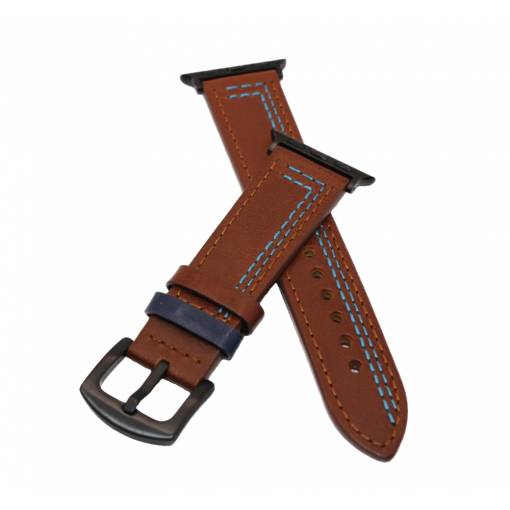Curea din piele eses pentru Apple Watch - Maro cu model albastru 38mm, 40mm, 41mm