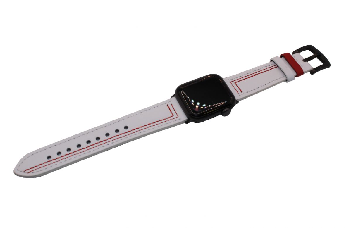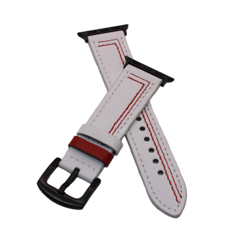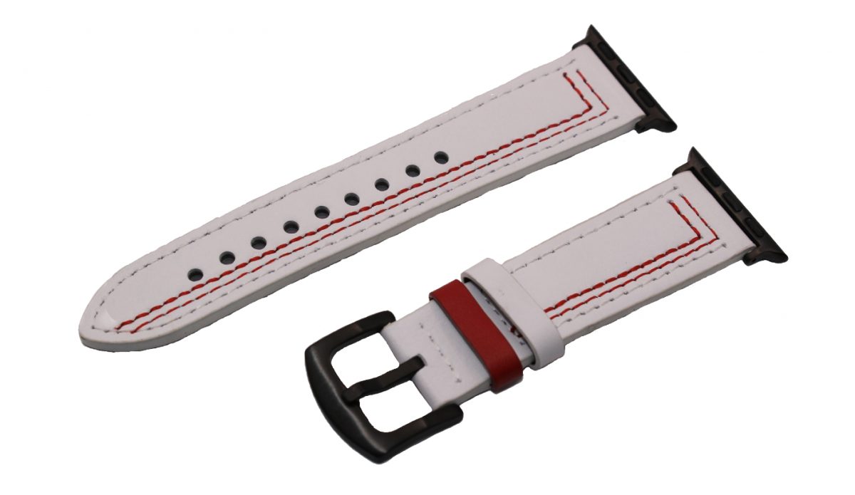 Curea din piele eses pentru Apple Watch - Albă cu model roșu 38mm, 40mm, 41mm