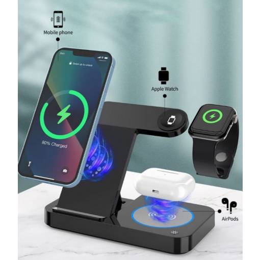 Stand de încărcare pentru dispozitive Apple 15W 4 în 1 - Alb