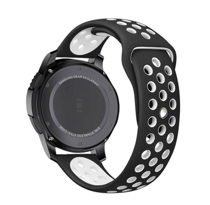 Curea perforată din silicon eses - Negru și alb, 18 mm