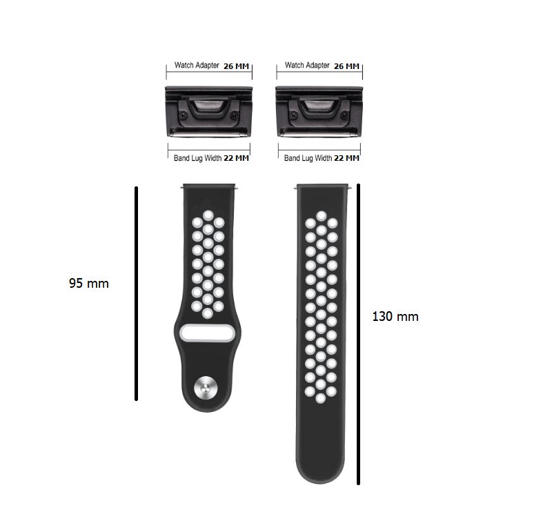 esel Brățară din silicon pentru Garmin - Neagră perforată, 26 mm