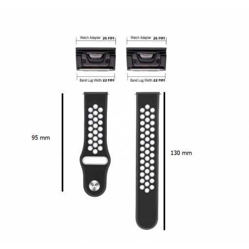 esel Brățară din silicon pentru Garmin - Neagră perforată, 26 mm