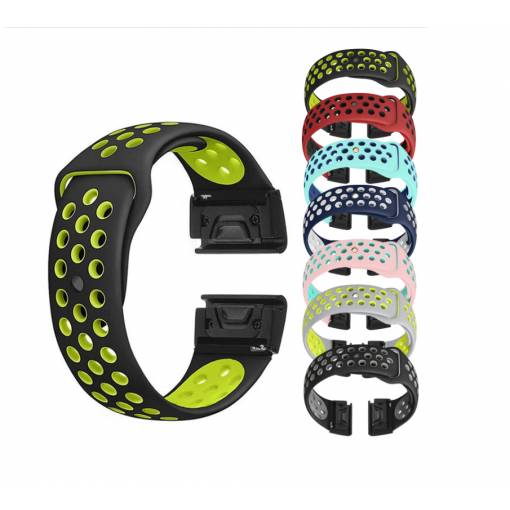 Curea perforată din silicon eses pentru Garmin - Negru verde, QuickFit 20 mm