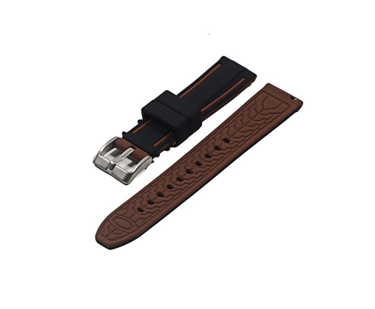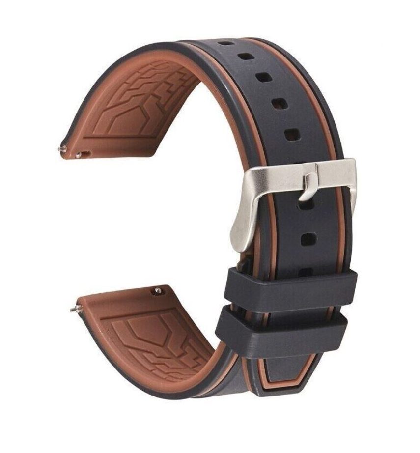 Curea din silicon eses cu bandă bicoloră - Maro negru, 24 mm