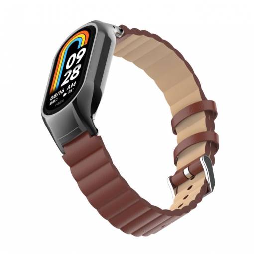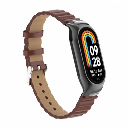 esem curea din piele ondulată pentru Xiaomi Smart Band 8, 9 și 10 - Maro