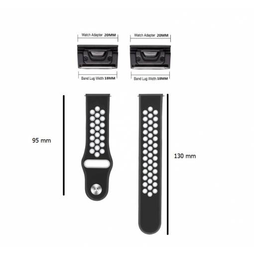 Curea perforată din silicon eses pentru Garmin - Roșu Negru, QuickFit 20 mm