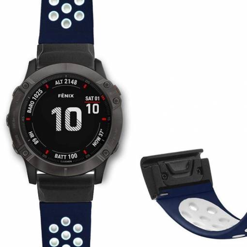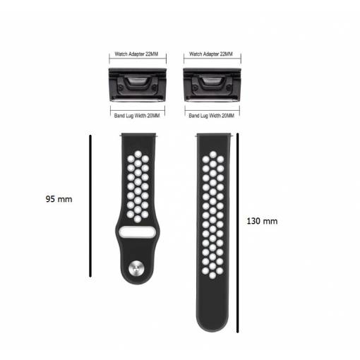 Brățară din silicon perforată pentru Garmin - Roșu-negru, QuickFit 22 mm