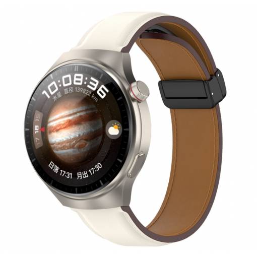 Curea din piele eses cu cataramă magnetică 20 mm - Alb crem