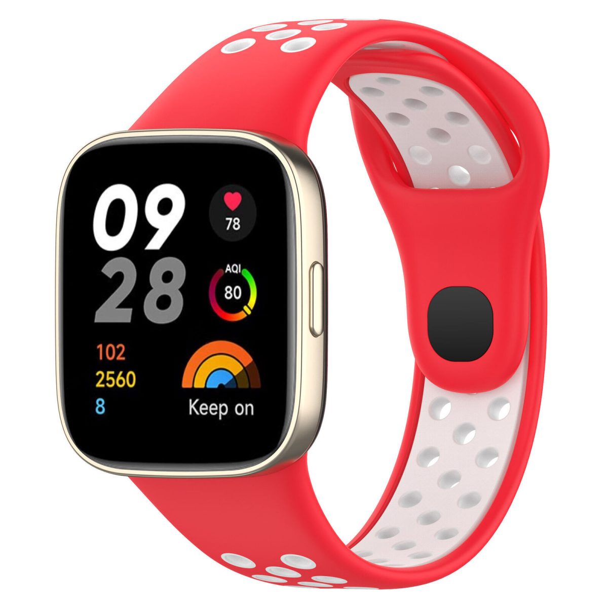 brățară din silicon perforat pentru Xiaomi Redmi Watch 3 Active - Roșu și alb