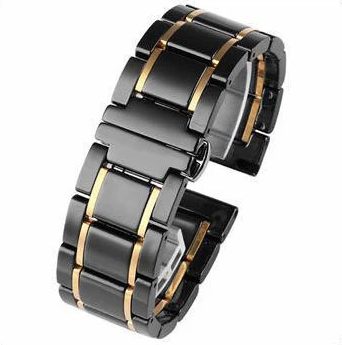 eses Ceramica brățară - Negru cu dungi aurii, 22 mm