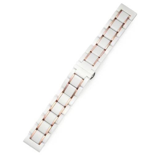 eses Ceramica brățară - Alb cu dungi roz aurii, 22 mm