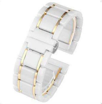 eses Ceramica brățară - Alb cu dungi aurii, 22 mm