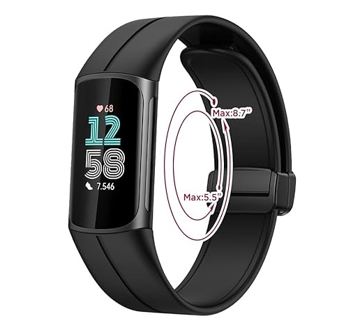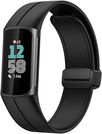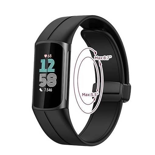brățară din silicon cu cataramă magnetică pentru Fitbit Charge 5 și 6 - neagră