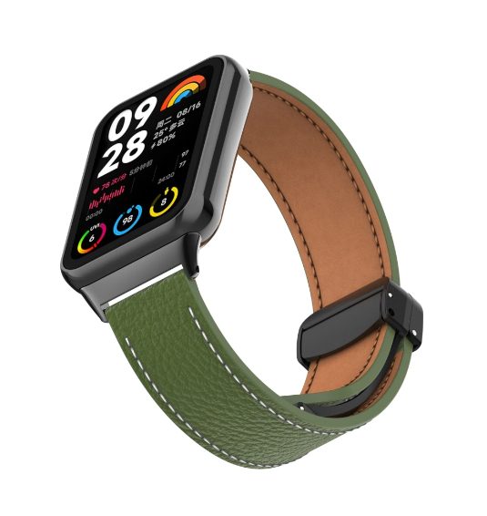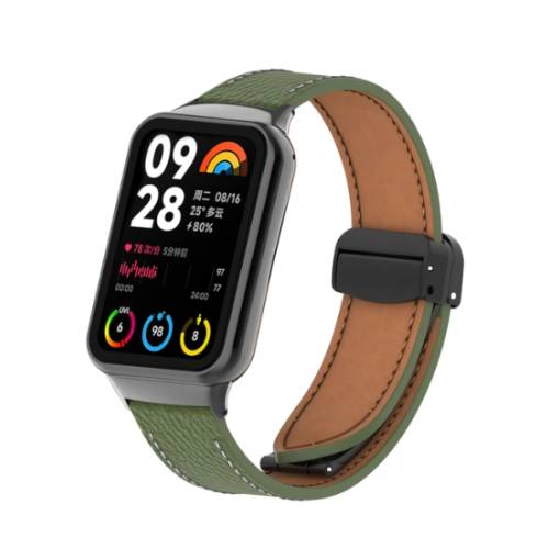 brățara din piele cu cataramă magnetică pentru Xiaomi Redmi Watch 4, Smart Band 8 Pro și 9 Pro - verde