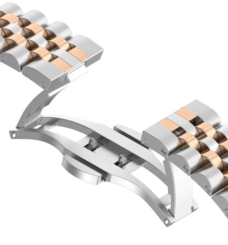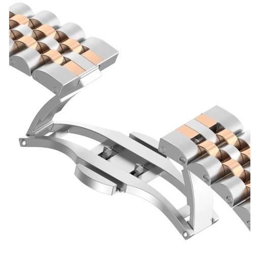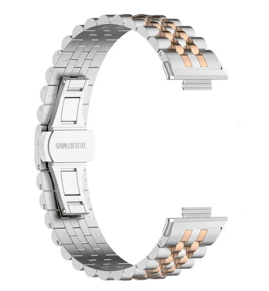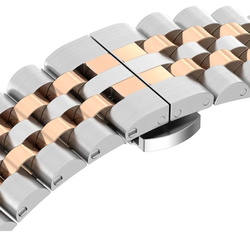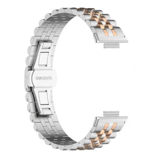 brățara metalică pentru Xiaomi Redmi Watch 4, Smart Band 8 Pro și 9 Pro - argintie cu roz-aurie