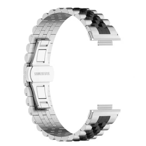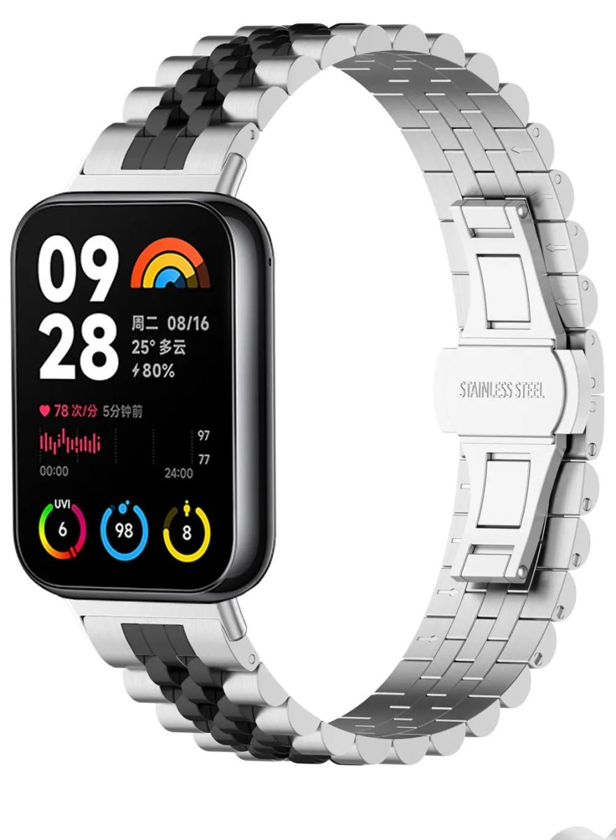 brățara metalică pentru Xiaomi Redmi Watch 4, Smart Band 8 Pro și 9 Pro - argintie cu bandă neagră