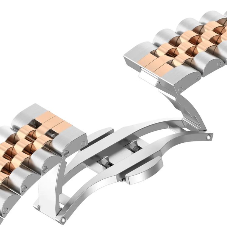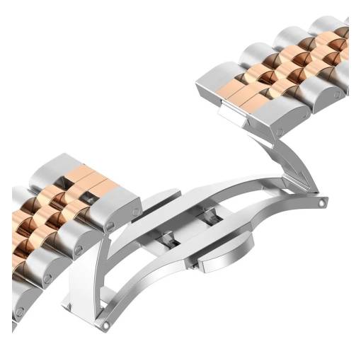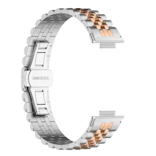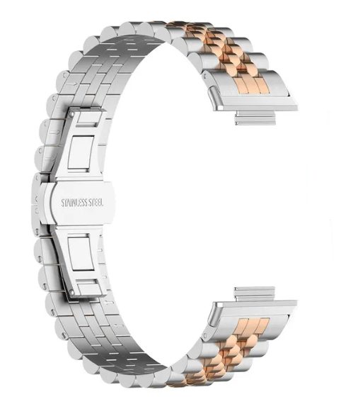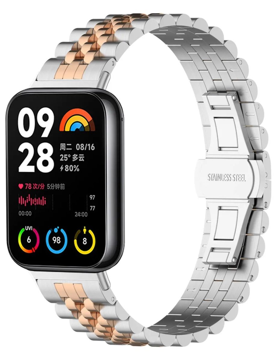 brățara metalică pentru Xiaomi Redmi Watch 4, Smart Band 8 Pro și 9 Pro - argintie cu bandă roz-aurie