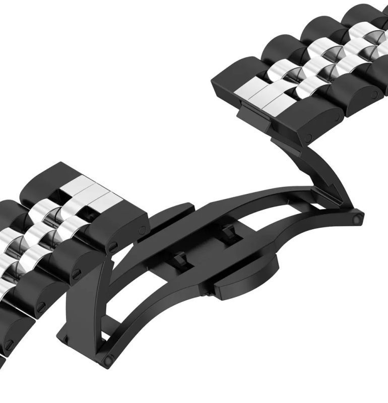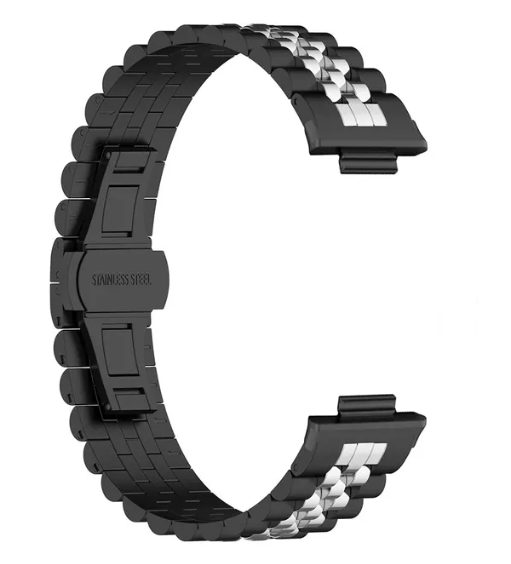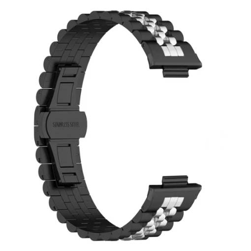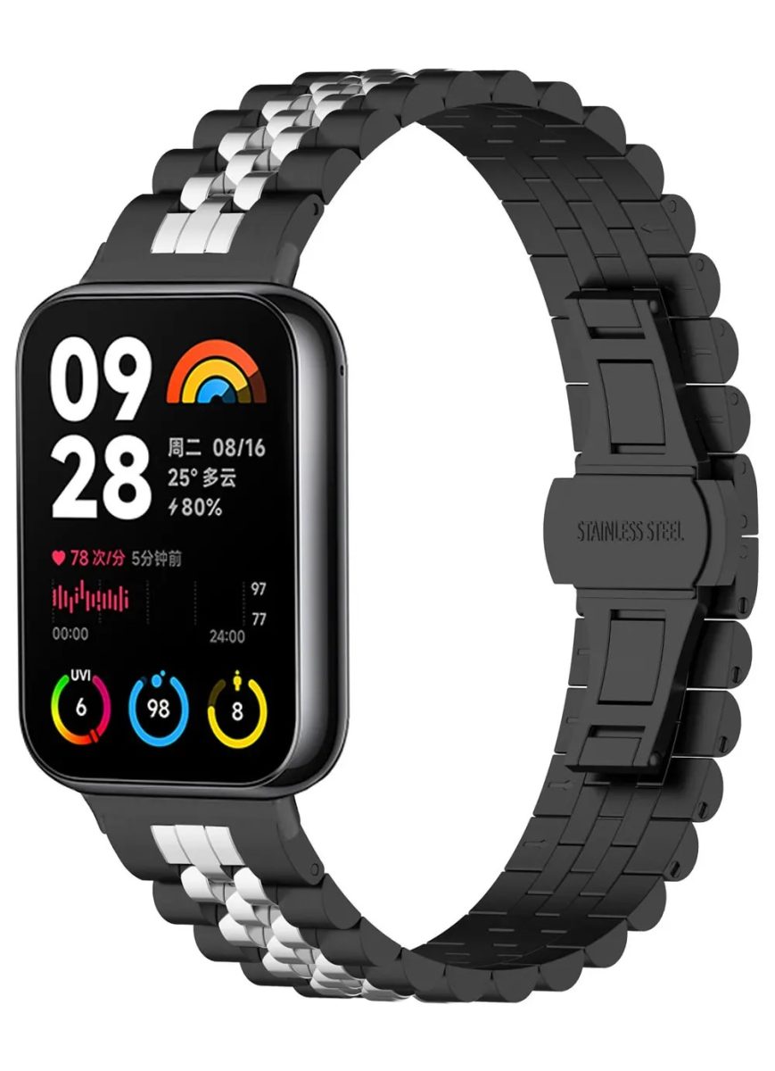 brățara metalică pentru Xiaomi Redmi Watch 4, Smart Band 8 Pro și 9 Pro - neagră cu bandă argintie