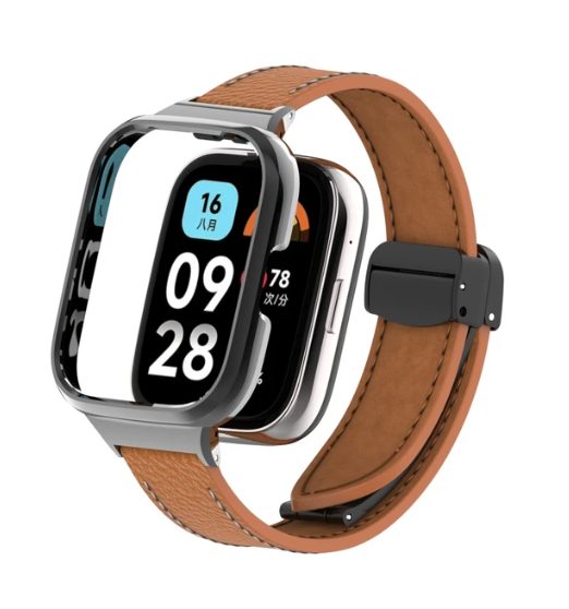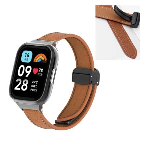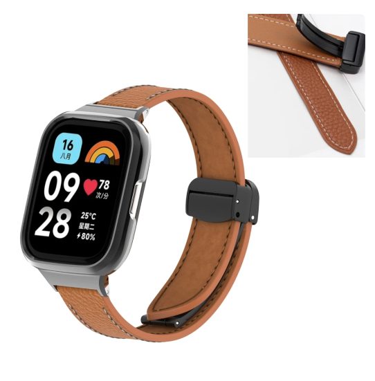 eses Curea din piele cu clips magnetic pentru Xiaomi Redmi Watch 3 Active - maro