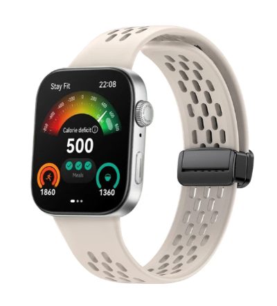 Brățară din silicon perforată cu cataramă magnetică pentru Huawei Watch Fit 3, 4 și 4 Pro - Bej