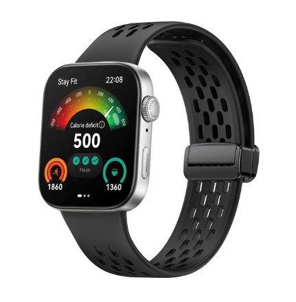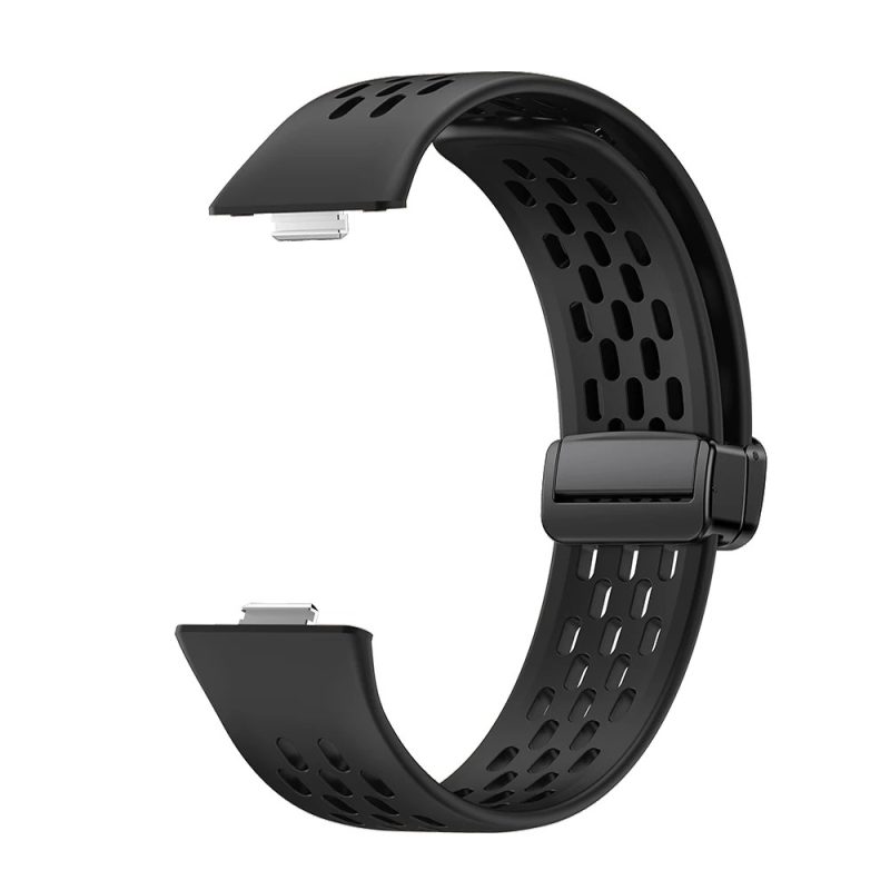 Brățară din silicon perforată cu cataramă magnetică pentru Huawei Watch Fit 3, 4 și 4 Pro - Neagră
