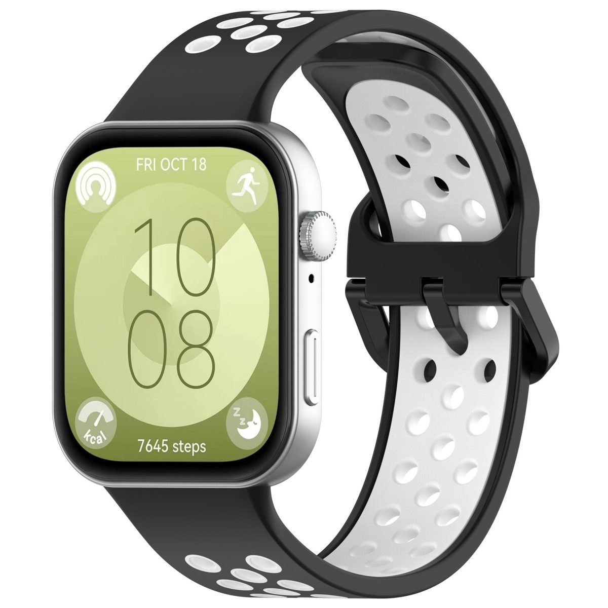 Brățară din silicon perforată pentru Huawei Watch Fit 3, 4 și 4 Pro - Alb și negru